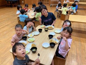 プレゼントのキラキラ手裏剣をもらって、み~んなでカレーを食べて、