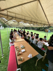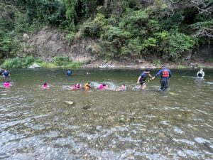 保護者の方が大勢参加してくださり、テントの設営から川遊び、夕食やシャワーのお世話、翌日の後片付けも雨の中手際よくやっていただき無事キャンプを体験することができました。 子どもたちも大満足でした。ありがとうございました。 |