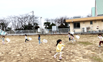 ビニール袋に紐をつけて走ると風を受けて袋が膨らみます